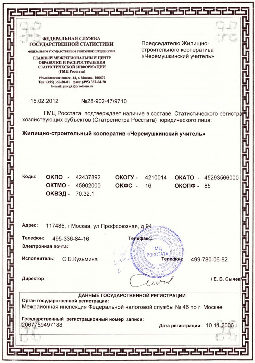 Информационное письмо об учете в ЕГРПО (РОССТАТ России)
