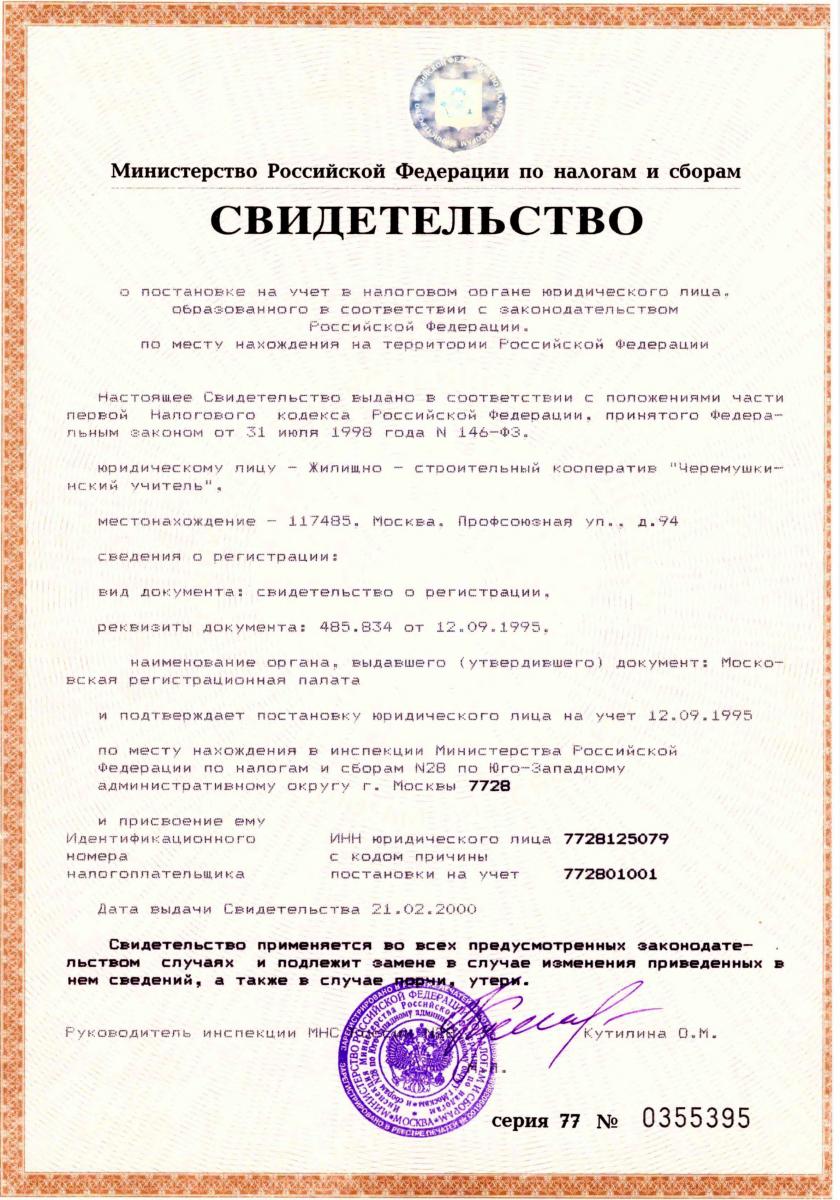 Свидетельство о постановке на учет в налоговом органе (ИНН)